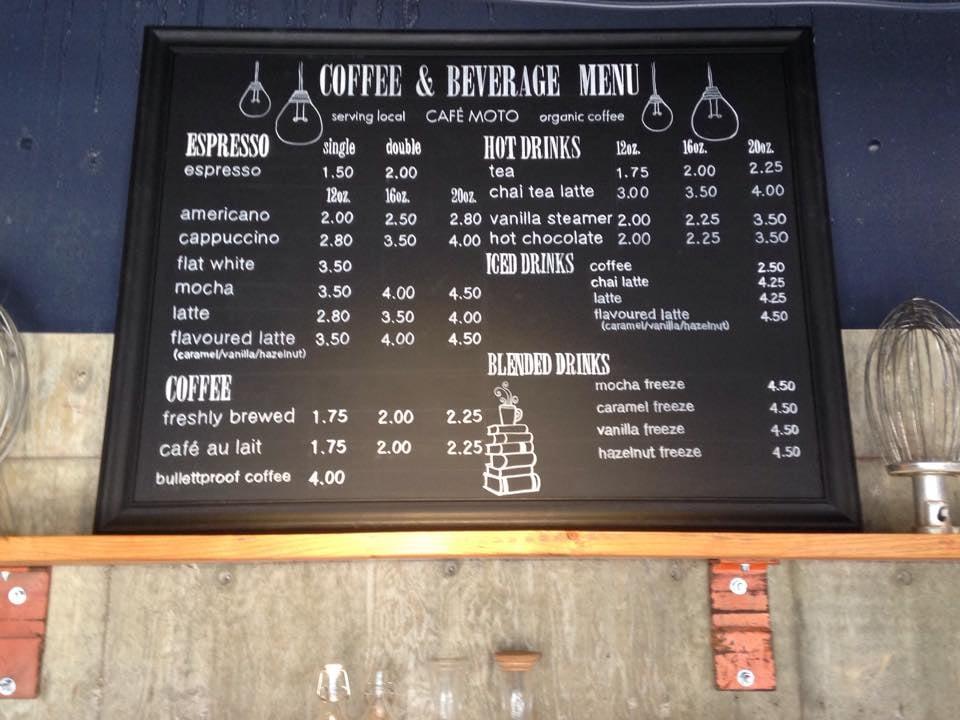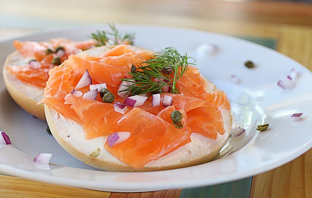 We serve organic fair-trade Coffee and Espresso from Cafe Moto, Acai, House-made Lox and Sausages, Pastries, Sandwiches, and Salads.